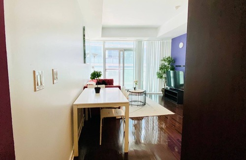 Experience Toronto from this beautiful vacation suite, just steps away from all the main attractions the City has to offer!NO need to drive when everything the city has to offer is ONLY a 5min walk! Union & Go Station, PATH system(grocery store and liquor store available indoors without moving out of the buildings), CN Tower, Ripley's Aquarium, Scotiabank Arena, Rogers Centre, Maple leaf square, Metro Convention Centre, Weston Harbour Castle, Billy Bishop Airport, Toronto Islands Ferry, etc.