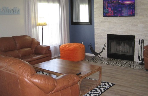This spacious 3 bedroom, 2 bathroom home is located in the city of Palm Coast in what is known as the "Seminole Woods." The home is spacious enough for the whole family, up to 8 people, and there is a place for everyone! Ample Living Rooms with surprisingly large dining table and TV plus cozy Family Room with another TV and the fireplace.