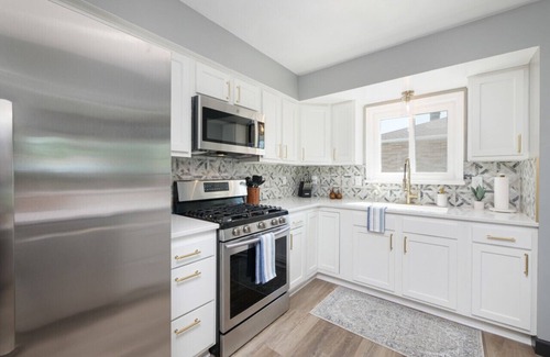 The recently remodeled kitchen boasts quartz countertops, a stylish backsplash, and new cabinets for a luxurious cooking experience. Create unforgettable memories in your private poolside and hot tub paradise!