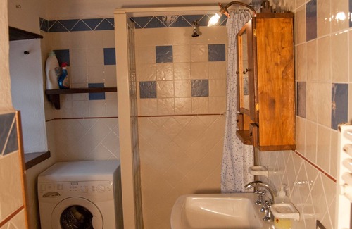 The property is situated on the beautiful slopes of Monte Amiata,in the southern half of Tuscany,just 2 Kms from the busy hill town of Castel del Piano. It is set in a silver olive grove,very close to one hidden natural pool in the river nearby,Podere San Vincenzo is built on the plant of 15th century chapel. The flat is warm and comfortable with typical country style furniture,with cotto floors,wooden beams and doors, the entry is into a large living/dining area with open plan kitchen and fire-place. There is one large double bedroom and a smaller double/twin,so the flat can accommodate three or four persons. Well appointed bathroom (provided with a washing machine). The views from the flat are wonderful and there is free access to a barbeque and garden furniture. The central location of Podere San Vincenzo offers visitors easy access to spas, historic towns, excursions, trekking in the Parks of Maremma, Monte Amiata and Monte Labbro