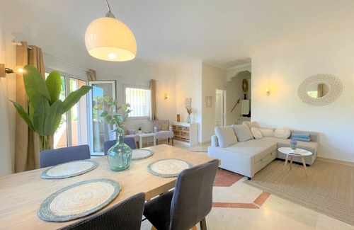 The modern villa is located in the beautiful "La Medina" community and spans two floors. The lower floor features a bright living room with a dining area and access to the spacious terrace, ideal for breakfast or BBQs. The fully equipped kitchen offers all modern amenities. Upstairs are two double bedrooms, one with an en suite bathroom, and an additional shower room. All rooms have air conditioning. An exclusive community pool and a carport are available. The minimum age for making reservations is 30 years old. The ID of the contract holder will be requested for verification on the dayofcheck-in.