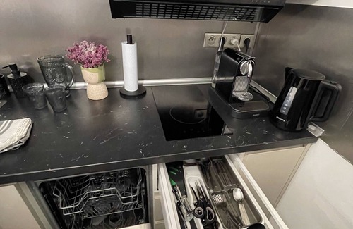 This 1-bedroom rental features a living room, a dining area, a sofa bed, and air conditioning. Bathroom amenities include a hair dryer, free toiletries, and towels. The kitchen is equipped with a stovetop, a refrigerator, and a dishwasher, as well as a coffee maker, an electric kettle, and a microwave. And you won't have to pack extra clothes, because you'll have a washer and dryer, too.