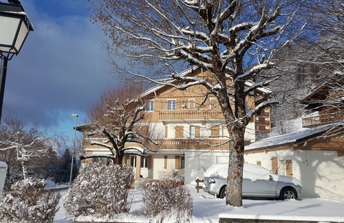 Beautiful luxury apartment of 65 m2 in a chalet in the heart of the resort, completely renovated, it has two 2 charming master suites and a sleeping area on the mezzanine. No need for a car during your stay, it is ideally located, 1 min walk from the Tourist Office and Place de l'Atmosphere, 6 min walk from the cable car / or 1 min walk from the ski free bus. All you have to do is put on your skis to join the gondola! And enjoy the entertainment in a calm and green environment.