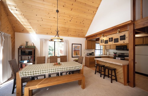 Welcome to our spacious cabin nestled amidst the breathtaking woods of Tahoe Donner. Featuring an open floor plan that seamlessly integrates the living room, dining area, and kitchen with an expansive island countertop, our cabin provides the perfect setting for memorable gatherings with family and friends.