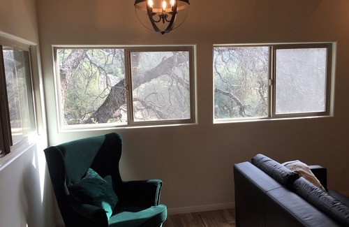 A secluded, nature retreat Tall Timberes Treehouse is surrounded by 25 private acres of oaks, trails,horses, wildlife in the mountain town of Julian. You can hike to Julian in 15-20 minutes. Explore , read, relax on the large covered deck. Surrounded by fresh air, bird watching, & open space. Wineries in downtown Julian & Breweries, Jul Hard Cider. Close to all Julian Wedding Venues. Relax after exploring in the living room by gas fireplace and in your plush King-sized bed with cozy down comforter.