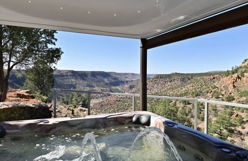 Stay at America's most majestic ranch with extreme architecture overhanging a river canyon, extreme views, and an opportunity to enjoy extreme activities and adventures with equine and firearms sports on an a la carte basis. Eight suites with a king size bed and bathroom facing the 800 feet canyon below provide unforgettable luxury. Besides canyon landscape of unspeakable beauty, come to enjoy the best of equine, firearms and canyon sports at the incomparable Canyon Madness Ranch.