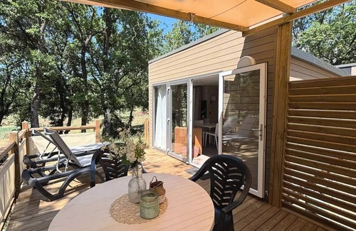 Accommodation: Old: 2019Reversible air conditioning in the living roomTelevision in the living room (French TV channels)DishwasherRaised and semi-covered wooden terraceLocation for 1 carDimensions: 5.5 m x 4 mDRAPS AND SERVIETTS INCLUDED