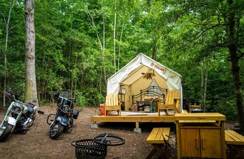 Tentrr Signature Site - Starlight Glamping: Tent 1- Stargazer is located in Marietta. Tentrr Signature Site - Starlight Glamping: Tent 1- Stargazer provides accommodation, featuring Bedding/Linens, among other amenities. This RV Rental features Bedding/Linens, to make your stay a comfortable one.