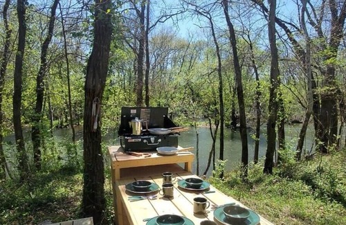 Riverside camp built for fishing, floating, grilling, and chilling just south of Nashville. A convenient adventure.
