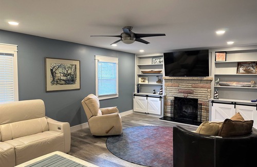 Spacious Home, in the private resort community of Sand Beach, on Lake Erie. The perfect place for relaxing family vacations, summer fun and Lake Erie fishing trips. This cottage is a completely remodeled and updated ranch style home. The living room offers a large flat screen TV with digital television and live streaming, karaoke, and a large recliner couch with plenty of seating for relaxing. and enjoying the electric fireplace. The fully equipped kitchen is ready for home cooked meals and socializing with a coffee station and seating for the whole family. A large deck is right off of the kitchen with outdoor seating and beautiful views of Lake Erie! The master bedroom has a King size bed with a full bath right across the hallway. The second bedroom offers a queen size bed and a triple twin size bunkbed (the bottom bunk is a trundle and is for toddler use only). The third bedroom has a bunkbed, which is a full over 2 twin beds. The fourth bedroom has a twin over full bunkbed and a toddler over toddler bunkbed (suitable for toddlers ages 2-4 only). 2 'pack 'n' play" bassinets are provided. All four bedrooms have flat screen TV's with Roku's with Hulu and Hulu Live. The full second bathroom has a tub/shower. The laundry room is equipped with a full size washer/dryer. All linens and towels are provided. Enjoy our game room with pinball and arcade games and the Breezeway offering a Tiki Bar, TV and Poker Table.