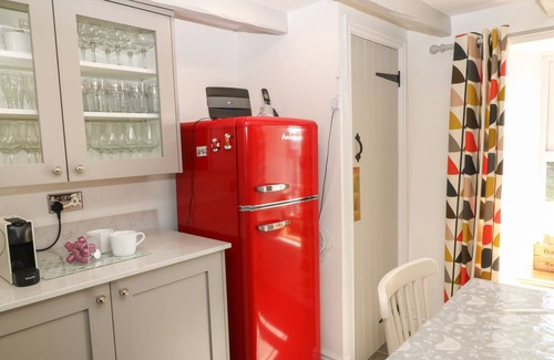 Amenities: Oil central heating via the Rayburn range, Range cooker, combination microwave oven, fridge/freezer, washer/dryer, dishwasher, wine cooler and Nespresso coffee machine. 4K TV, Sky Q (with Movies and Box-Set packages), DVD, Wi-Fi, selection of books and games, Bluetooth Speaker. Bed linen and towels inc. in rent. Off-road parking for one car (capable of accommodating a large 4x4). Detached garden directly opposite the front of the property. Private patio with table and chairs. Two well-behaved dogs welcome. Sorry, no smoking. Shop 1.8 miles, pub 1.7 miles. Note: There is a Good Housekeeping Bond of £200 for this property. Note: This property will only accept weekly bookings from Saturdays in July and August