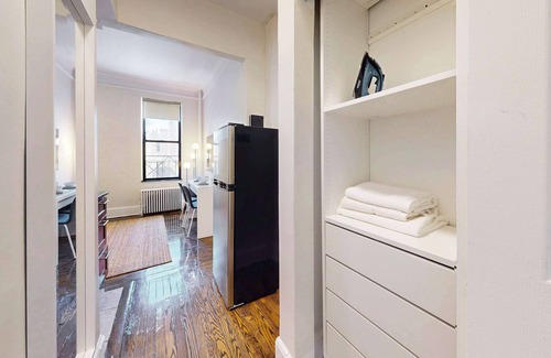 Welcome to Alphabet Haus, a serene studio retreat in the East Village, steps from Tompkins Square Park, St. Mark’s Place, and vibrant Alphabet City. Designed for extended stays, it features a calming green accent wall, cozy furnishings, a full kitchen with dishwasher, a dedicated workspace, and a closet with a wardrobe including drawers and hanging space—perfect for remote work or longer-term living in one of NYC’s most iconic neighborhoods.