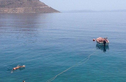Anoi is the higher part of the house and totally independent, from the other two levels with a private access. From this level there is access to the exterior on both sides, with a stunnining view to the sea. The western yard offers a shady refuge under the trees. The east yard below the heavy rocks, offers a magnificent view to the sea and Kotronas bay. The interior is modern and fuctional. The house has a fire place for the winter days. in ANOI maximum four persons can stay in their own beds.