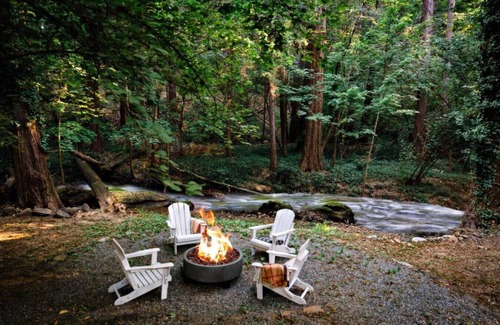 Set back from the bustle of Broad Street, you’d be hard-pressed to find another luxury cabin in Nevada City that offers as many must-haves as The Antler. Steps to downtown, situated directly on little Deer Creek, with a private driveway and on-site parking. A private wrap-around deck with a sunk-in hot tub. High ceilings, w/natural wood beams, a Creekside fire pit in the evenings for s'mores and stories, and an overall quiet, calm, nurturing vibe. Love your life and times at the Antler!