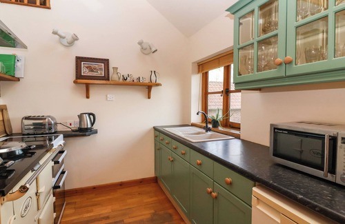 The Apple House consists of a kitchen with AGA cooker, electric oven and hob, microwave, and fridge, a dining area, a sitting area with TV and open fire, and a boot room. The bedrooms consist of a double and ground-floor double. There is a ground-floor shower room with walk-in shower, basin, and WC. WiFi, fuel, power, starter pack for open fire, bed linen, and towels are included in the rent. Outside, there is a rear garden with patio and lawn and private, off-road parking for two cars. Two well-behaved dogs welcome, but sorry, strictly no smoking. Shop 1.1 miles, pub 1.6 miles, river 0.7 miles. Make fond memories with all the family at The Apple House. Note: Camp beds are available for children if additional space is needed. Note: This property has a Good Housekeeping Bond of £250.