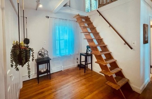 The beautiful layout was designed by collaboration of local artists combining rustic, and modern flair. This location is equipped to work from home in an office space and cozy loft. Our cottage is fully furnished, equipped with new appliances, and 3 TVs!