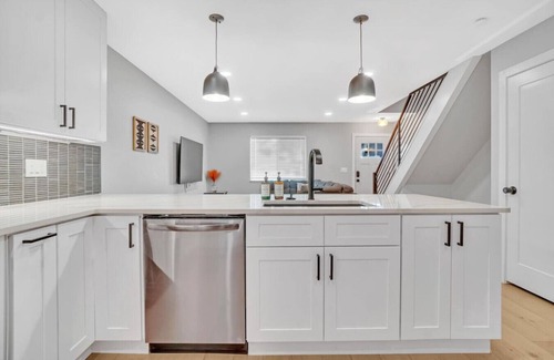Why settle for one home when you can have two? This modern Arvada gem combines two side-by-side homes into one spacious retreat. With 5 bedrooms, 2 kitchens, and 2 living rooms, there’s room for everyone to gather or unwind. Sunlight floods the bright, stylish interiors, creating an inviting vibe where you can cook, connect, laugh, and relax. Perfect for groups seeking space, comfort, and a seamless stay to make memories together.