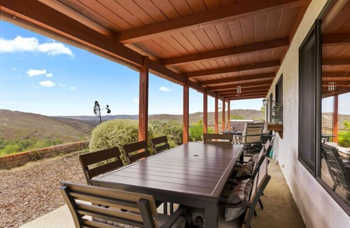 Family friendly four bedroom home on 3 acres of land. Rejuvenate from city life sitting in the hot tub with our panoramic views toward the Pacific Ocean. The home boarders Camp Pendleton to the west leaving unobstructed views from all windows and the back patio to undeveloped land toward the Pacific Ocean. Only 20 minutes from the beach this home boasts wildlife, country living and relaxation all within a quick drive of the major attractions of Southern California.