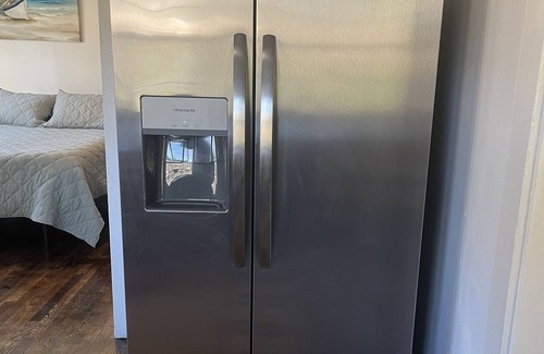 Close to everything at this centrally-located budget apartment with many premium features. Completely renovated with new appliances, bed, 4k LCD TVs, full size kitchen with complete kitchen ware, microwave, coffee maker, real hardwood floors, etc. Featuring a brand new queen size medium soft purple plus Mattress on an adjustable remote controlled bed frame, pong multicade table top arcade, large 4K televisions with surround sound, full size refrigerator, washer & dryer, dishwasher, bidet, outside picnic bench and bbq grill. Sofa bed with linen set.