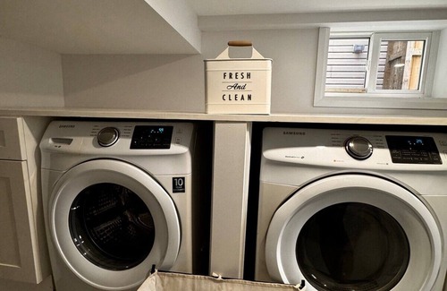 This charming basement suite offers the ideal blend of comfort and functionality, perfect for guests who are working from home or seeking a peaceful getaway. Enjoy the spacious, open-concept living area featuring a king-sized bed in the main living space, and a queen-sized bed in the separate bedroom.