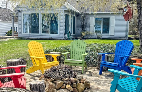 Fire-Pit Area with Lounge Chairs in Front and Lakefront
