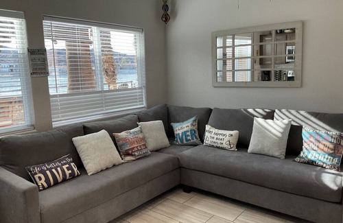 Villa #11 offers a two unit home featuring in the main unit - The kitchen, small living room with TV, queen bed with TV and full bathroom. Second unit with King size bed with TV, this unit is a large room with its own two sink bathroom. The stellar location, to the high-end finishings, this Villa is waiting to become the ideal vacation home for you and your family. Whether you are looking for a week rental or a weekend getaway, Villa #11 is the perfect choice for guests of all ages. Entertaining friends and family is easy-the Villa comes equipped with a tiki bar with seating for 8, outdoor kitchen this is a spacious beachfront patio overlooking the Colorado River.