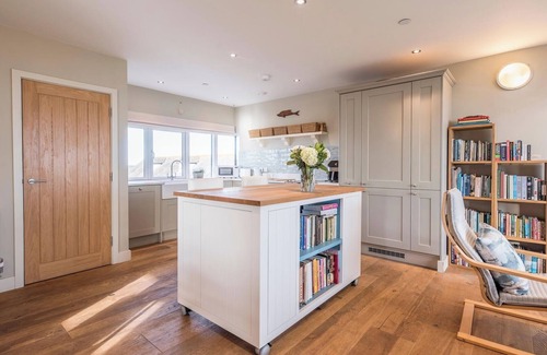 This stunning holiday home, perched between the beach and high street, is spacious and stylish with uninterrupted views of the sea to the east and south, the estuary to the west and balconies so you can enjoy indoor/outdoor living. Accommodation is spread over four floors with a well-equipped open plan living/kitchen/dining room on the 2nd floor and a wonderful bedroom on the top floor with a wide balcony where you can enjoy morning coffee watching the sun rise over the ocean.