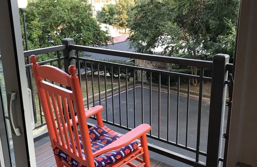 Tell me what sounds like the better, more relaxing option: You could stay off campus at an expensive, common, yet not so exciting name hotel and pay $450++/ night, leave extra early for the game (after making several trips to pack up your car), drive to the game and fight traffic, find and pay for an expensive parking spot, park, remember where you parked, then walk/hike your way to Death Valley. After the game, hike back, try to find your car, fight with your spouse because you insisted you gave them the car keys, fight traffic back to the hotel, wait for the crowded elevator and finally get to your not so exciting room. You plop down on the bed stressed, dead tired knowing you have to shower, then talk about going out, driving back, etc.......... OR You could stay here, not worry about having to drive (1 parking spot included during your stay), tailgate from the room, on the balcony, in the Tiger Den or the tailgating area in the confines of the building, maybe take the 30 second walk to Esso for a cold one, enjoy a leisurely 5 minute stroll to Death Valley, come back for halftime or after the game and tailgate, sit at Esso or on my deck and watch the traffic go by (oh, and not argue with your spouse about the car keys) and have a stress free fun day. If you are a basketball or base/softball fan, that’s a short walk too. Just in case you wish to read more, here’s the “official” description: Excellent for business professionals and Clemson fans for sports weekends. Access to sports lounge, outdoor pavilion, elevator & parking. 1 assigned parking space, located behind the famous Esso Club and 1 block from Death Valley, Doug Kingsmore and the newly remodeled Little John Coliseum. Private secured access to parking space and condo comes complete with elevator access to the Tiger Sports Lounge (flat screen TV, Bar and balcony overlooking ESSO). Pavilion for outdoor entertaining as well as gas fireplace and grill. Living area with glass sliding doors, spacious kitchen area, full bath with walk-in shower, and multi-use oversized closet. Tailgate with friends and family, have a place to sleep, and have the convenience of walking to sports, graduation events and downtown. All paper products provided, fully stocked kitchen with silverware, flatware, microwave, toaster oven and garbage disposal. (BYO food & drink). Host also provides toothpaste, towels, washcloths, soaps, shampoos, sheets and pillows. $125 cleaning fee separate charge Go ahead and book now!