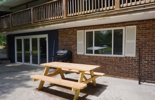 The Blue Cat Lodge is located directly on Wattsbar Lake. Featuring a private dock, a wraparound deck, and an outstanding view, we know you will enjoy staying here as much as we have. The recently renovated home has two living rooms, one full kitchen upstairs and a half kitchen/bar downstairs, two queen beds, bunk beds, and a full bed. Grill out and enjoy dinner with a lake view or take a short ride to Euchee Grill & Brewhouse. The cornhole boards and firepit are yours to enjoy!