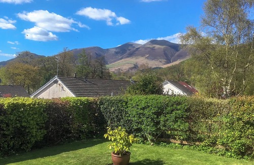Bathroom: Bath With Shower Over, Toilet. Gas central heating, gas, electricity, bed linen, towels and Wi-Fi included. Cot available. Additional freezer in garage.. Front and rear gardens with lawn, seating and BBQ. Bike store. Private parking for 2 cars; additional on road parking.. The bolthole is a cosy, semi-detached bungalow located in a very popular but peaceful residential area of Keswick near to the Convention Centre. It is situated in an elevated position providing wonderful fell views from the rear garden across to Catbells, Causey Pike, Grisedale Pike and around to Ullock Pike, Skiddaw and Latrigg.