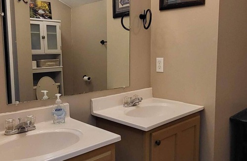 Whether you have 2 guest or 16, this cozy little bungalow is perfect! This cabin has 2 large bedrooms, each containing 1 Queen bed and 6 twins, totaling 14 beds! 2 full bathrooms with double sinks and stand up showers. Large open space concept kitchen, dining and living room, so that everyone can spend time together! Cabin is equipped with all your cooking utensils and dinnerware, a full size oven/range , full size refrigerator,and full size washer and dryer are also available! Outdoor space is large enough to accommodate a large gathering Come sit on the front porch swing and unwind your mind, or maybe do a little trout fishing, float the river, or drive 10 minutes to spend your day at Greer's Ferry Lake! Perfect for church retreats, sleepovers, ladies night, bachelor parties, or just about any gathering you can think of!