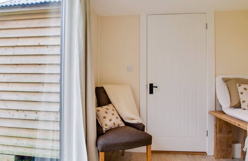 The Burrow is a bright, beautiful and boutique cabin which has been stunningly hand-crafted by its' owner. Relax in the hot tub and immerse yourself in nature at this truly idyllic spot for two. With one plush double bedroom, with floor to ceiling windows, you can truly connect with the surrounding nature outside. The Burrow uses energy efficient techniques to ensure you have a cosy experience during your stay. The main area is open plan with French doors to a decked area and a fully equipped kitchen and dining area. The bedroom has an en-suite wet room and is linked to the main hub, equipped with seating in both areas allowing you to enjoy the outside from the comfort of the inside when you are relaxing and watching the world go by! The interiors have been designed with comfort in mind, with some of the smaller pieces of furniture having been made by the owner and there are many thoughtful touches provided to ensure you have a carefree stay. Outside there is a seating area with a chiminea and a hot tub with additional seating under a tented canopy and barbecue (Summer months or weather permitting). The Burrow is close to the pretty village of Biddenden and the larger town of Tenterden. There are many gastro pubs locally, Biddenden Vineyards, Sissinghurst Castle, which you can walk to through the fields and the Sussex coast is only 23 mile away. There is a local pub within walking distance, The Three Chimneys which welcomes dogs.