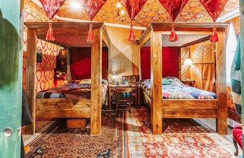 The Burrow is another spectacular, magical space to share with you! Hidden on our 40 acre private farm, it has lots to explore, our signature scavenger hunt, and a Muggle TV & DVD player with the Harry Potter/Fantastic Beasts documentaries (+100 more) are there for you!