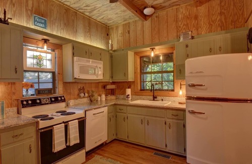 Escape to Georgia’s mountains to this rustic chic mountain cabin and carriage house duo. Enjoy barbecuing on the deck, roasting s’mores over the fire pit, and sipping morning coffee on the rocking chair front porch in this private setting. The 2 bedroom, 1.5 bath main cabin and a 1 bedroom, 1 bath carriage house are just minutes from charming Downtown Clayton and within a short drive of Lake Burton, Tallulah Gorge State Park, and unbeatable hiking trails, waterfalls, and world class rivers. THE CABIN AND CARRIAGE HOUSE: ‘Possum Trot’ is a cozy, rustic chic cabin with an additional private carriage house that is ideal for couples, small friend group retreat, or a family looking to get away from the hustle and bustle of city life for a relaxing escape in the Georgia mountains. We are located just minutes of Downtown Clayton yet you still feel remote and secluded. MAIN CABIN DETAILS: Master Bedroom 1: ☞ King Bed with premium feather mattress topper from Restoration Hardware ☞ Luxury bedding ☞ 50” Smart TV ☞ Custom Blackout Roman Shades from West Elm ☞ Closet with hangers, dresser, and cowhide covered luggage rack ☞ Premium Mila Air Purifier ☞ Beautiful views Bedroom 2: ☞ Queen Bed with premium feather mattress topper from Pottery Barn ☞ Luxury bedding ☞ 36” Smart TV ☞ Premium Blackout Roman Shades from West Elm ☞ Full Length mirror ☞ Closet with hangers, dresser, and cowhide covered luggage rack Upstairs Full Bathroom: ☞ Shower/tub combo ☞ Soft, fluffy towels ☞ Luxury amenities - Aveda shampoo, conditioner, and body wash provided ☞ Hair dryer Other: ☞ Large washer and dryer with detergent provided ☞ Robot vacuum and cordless Dyson ☞ Labeled switches and cabinets ☞ Ceiling fans throughout, including the porch ☞ Portable fans and space heaters OUTDOOR PERKS: Expansive Deck, patio seating furnished with luxury cushions and pillows, Solo Stove smokeless fire pit, restored cast iron chimenea fire pit, umbrella, electric bug zapper, covered propane & charcoal grill with grilling utensils, covered screened-in porch with rocking chairs, homemade ice cream churn, corn hole boards, and mountain views and wooded backyard. CABIN PERKS: Wood-burning stove with stone hearth, 60 “Samsung Frame Smart TV with popular streaming subscriptions, spacious Restoration Hardware dining table and chairs, lux rustic chic cabin décor and comfortable furnishings, premium Mila Air Purifiers located on both levels, custom Brazilian cowhide rugs. An unplugged’’ game room with life sized tic-tac-toe, chess/checkers table, playing cards, games, books, and puzzles. KITCHEN: Fully equipped kitchen featuring Retro Big Chill appliances, granite countertops, cooking essentials featuring cookware by Le Creuset, Calphalon, Cuisinart, and, dishware/flatware, Keurig pod and drip coffee maker, SMEG Espresso maker, with complementary coffee, sugar and creamers, spices and seasonings, SMEG toaster, vintage blender, and air fryer. Robot vacuum and cordless Dyson. GENERAL: Luxury linens/towels provided, washer/dryer, central heating and air conditioning, ceiling fans, complimentary luxury toiletries including Aveda shampoo, conditioner, and body wash. Labeled switches. The Carriage House offers a private cozy retreat, en-suite full bathroom and very well equipped kitchenette. Guests can enjoy exclusive privacy, a separate entrance, driveway and private areas exclusive of the Main Cabin. Perfect for in-laws, couples, or families looking for some private space. THE CARRIAGE HOSUE PERKS: Lux rustic chic cabin décor and comfortable furnishings, custom Brazilian cowhide rug and ambient electric fireplace. Luxury linens/towels provided. ☞Charming ambient Electric Fireplace for cozy ambience and heat on chilly days ☞ Full size day bed with a twin trundle with new premium memory foam mattresses ☞ Luxury bedding by Restoration Hardware and Pottery Barn ☞ 40” Smart TV ☞ Window shades ☞ Closet with hangers, dresser, and cowhide covered luggage rack Spacious Full Bathroom: ☞ Shower/tub combo ☞ Soft, fluffy spa towels ☞ Luxury amenities - Aveda shampoo, conditioner, and body wash provided ☞ Hair dryer KITCHENETTE: Nicely equipped kitchenette perfect for making breakfast or heating up meals- not suitable for cooking complete meals. ☞ Basic cooking essentials, dishware by Restoration Hardware /flatware ☞ Keurig pod and drip coffee maker with complementary coffee, sugar and creamers ☞ Mini fridge with mini freezer ☞ 2 Burner Hotplate ☞ Toaster oven ☞ Microwave ☞ No dishwasher- but dish-soap, drying rack and cleaning supplies provided Other: ☞ Screened Porch- with comfy chairs, pillows and cozy throw blanket ☞ Outdoor Firepit with furniture and pillows and café lights strung in the branches ☞ Ceiling fans throughout ☞ Additional Portable fans and space heaters ☞ Wooded Mountain views and wooded backyard GENERAL: Luxury linens/towels provided, ceiling fans, complimentary luxury toiletries including shampoo, conditioner, and body wash. FAQ: Well-behaved and housebroken dogs are welcome with a mandatory pet fee (paid pre-trip, maximum of 2 allowed.) The cabin is a great place to unwind and relax. There is a Wi-Fi connection however, it is not suitable for live-stream gaming or dedicated remote workers that require super high-speed connections. There is limited cell service in the region. Please check with your service provider for specific coverage availability and limitations, if any. We are located on a spring well so please exercise conservative measures with our natural resources. Our remote location is subject to power and internet outages due to weather, fallen trees or service provider interruptions that are outside our control. Emergency lanterns and candles are available. PARKING: Gravel Driveway (3 vehicles) at The Cabin and (2 Vehicles) at The Carriage House. DOWNTOWN CLAYTON (3.5 Miles) This charming small town is filled with an invitin