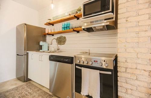 Beautiful character neighborhood. Just down the street from the pelican market which offers fresh daily baking and a grocery store. Just past that a block is Tastebuds Cafe which is an amazing coffee, wine, soup, sandwich bistro. The Hearth restaurant, chop steakhouse and Denny's are all short drive away from the house.