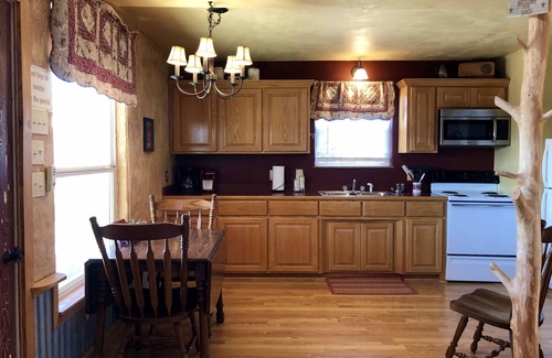 The warm and welcoming casita has a fully equipped kitchen plus a barbecue grill (charcoal or gas). Feeling adventurous? There's a campfire cooking area where you can grill a cowboy sized steak or toast a marshmallow! Just don't forget your food…it's a long drive to the grocery store (steaks or other available cuts of 'Chesser natural' beef or lamb are available for purchase upon availability)!
