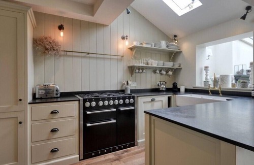 Enter through cloakroom into an wonderful open space containing dining table, wood burning stove and fully fitted kitchen, an open plan garden room connects the space with the garden and has an open fire and doors to the garden. Space for 10 to dine together and make full use of the lovely kitchen