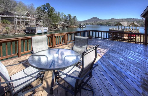 The Cove at Lake Burton, a vintage styled lake house located on the southern shores of Lake Burton near LaPrades Marina, features a covered boathouse pub styled bar with hot tub, large open deck for some fun in the sun, and a lake level sunning deck - all with amazing views of the Appalachian Mountains that surround this unique body of water. Lake Burton has 62 Miles of shoreline, so bring your boat and launch your crafts at LaPrades Marina - 5 miles by car or a quick boat ride to The Cove. LaPrades offers pontoon rentals and can accommodate overnight rentals as well as storage of personal trailers. Anchorage Marine on Lake Burton offers ski boat, jet ski and all watersport rentals. Visit Moccasin Creek State Park for kayak, stand-up paddleboard and canoe rentals, or to cast a hook in a clear mountain stream, or hike miles of beautiful trails... and be sure to check out the Fish Hatchery! Summer at Lake Burton has a laid back vibe, with good food and music, and lots of fun happenings. Lake Burton Grill offers indoor or covered deck seating with stunning views of Lake Burton, a chef inspired menu and an extensive wine list. With nearby waterfalls, the Appalachian Trail, Vineyards & Wineries and outstanding restaurants, you'll find no shortage of wonderful experiences! The only season that might rival summer season at Burton is autumn on the lake (or holiday season on the lake ... or spring!) No matter what season, The Cove at Lake Burton is an amazing place to relax and reconnect with friends and family.