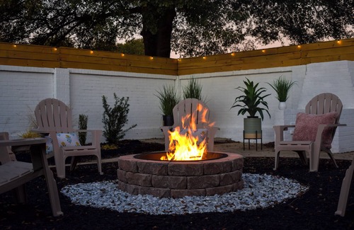 Outside, enjoy the private patio with twinkling lights and a firepit, creating a cozy, magical atmosphere. A grill is available for outdoor cooking. Please bring your own firewood and use the firepit safely.