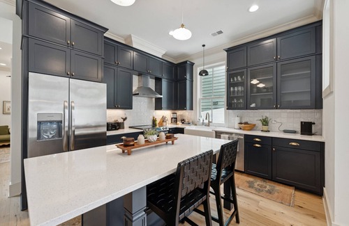 This elegant home features five comfortable bedrooms with room-darkening shades, each boasting timeless decor, modern details, and high-end furnishings, so you can enjoy a relaxing sanctuary after long days in downtown Charleston.