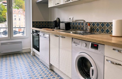 📍 You are in the historical and pedestrian district of Grenoble: many stores, bookstores, boutiques, markets, cafes, restaurants and museums in the immediate vicinity of the apartment. You are also a stone's throw from the magnificent Jardin de Ville, the Bastille cable car and the Saint Laurent district. For the more sporty, possibility to go for a run or walk from the apartment to the Bastille or the banks of the Isère.