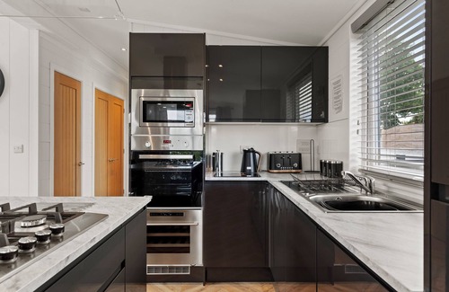Fully equipped with everything you will need for your self-catering holiday including a fridge freezer, dishwasher, washing machine, kettle, toaster, integrated worktop gas hob, electric oven, microwave, wine cooler, crockery, utensils and ample storage space. Seating at the kitchen island.