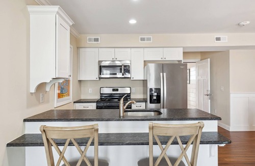 We invite you to spend some vacation time at The Dunes in Sea Isle City, NJ, any time of year! Located on the Southend of the island, just one block from the beach and merely steps from the bay, you will encounter what are undeniably the most luxurious rental properties found anywhere in Sea Isle City. Offering high-end finishes and exquisite design, coupled with the relaxing simplicity of living carefree at the beach, The Dunes will deliver you an experience that you will never forget. 3 Ensuite Bedrooms and a queen size sleeper sofa to sleep 8. Deck is a private, uncovered furnished with a partial view of the bay.