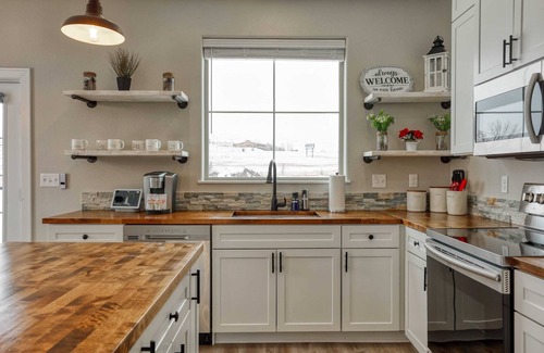 Escape to a modern retreat at The Farmhouse at Lincoln Suites in Sheridan, Wyoming. This beautifully appointed SMART home offers the perfect blend of luxury and convenience, located just off the interstate for easy access to all the best that Sheridan has to offer. This smart executive home has a full kitchen, 2 bedrooms with king, and queen-sized COMFY beds! We also have a very comfy queen sleeper sofa!
