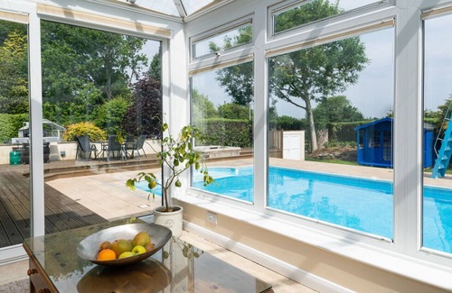 Bright and modern three bedroom property in Churston, Brixham with private swimming pool, spacious garden and a hot tub.