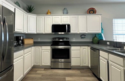 This vacation home is conveniently located within walking distance to the Surfside Pier and restaurants. Venture to the end of the Surfside Pier and be amazed at the vast Atlantic Ocean. For fishing enthusiasts, bring your rod and see if you can reel in the catch of the day! Make sure to try the delicious cuisine at one of the many restaurants close by. Cool off with some homemade ice cream and then head back to The Fish Bowl to rest and recharge! End your days relaxing on the deck. Spend evenings catching up with family and friends as you converse by the pool on the comfy outdoor sectional.