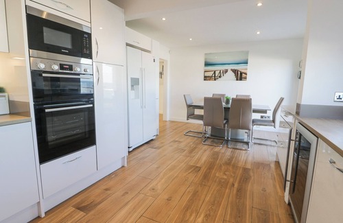 Amenities: Oil central heating. Oven, hob, microwave, fridge/freezer, dishwasher, washing machine, tumble dryer, wine chiller. 5 x TVs, WiFi. Fuel and power inc. in rent. Bed linen and towels inc. in rent. Highchair available on request. Ample off-road parking. Enclosed, rear garden with lawn, patio, furniture, and hot tub. Two well-behaved pets welcome. Sorry, no smoking. Shop 0.1 miles, pub 0.8 miles, beach 0.1 miles. Note: Dogs are not allowed in bedrooms, on furniture, or upstairs. Note: Additional charge of £35 per dog, per week. Note: Minimum age requirement is 25 years old, unless a family group with parents. Note: No all-male or all-female parties allowed. Note: Maximum of 4 children in the party. Note: Hot tub is available between April and September. The owner can not accept anything less than a week-long stay between April and September, so short breaks would not be considered during this period, however, off-peak short breaks would be accepted in the off season. Please note: between April - September this property can only accommodate week-long bookings that must start on Saturday. Christmas can also only accept week long bookings, please check on the calendar what the appropriate check in day is for that period.