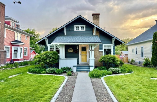 Welcome to our charming 100-yr-old home, steps away from downtown, the park, and library. Perfect for families or groups, it comfortably sleeps 7 with dining for 12. Enjoy original features, a cozy window seat, and modern comfort. Kid and pet-friendly, the fenced yard offers security, and parking for 4 vehicles is available. The fully stocked kitchen is ready to make a home-cooked meal. With a laundry room stocked & ready for use, experience a clean, comfortable stay in our historic haven.