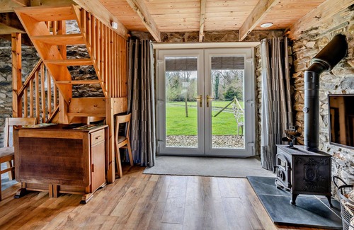 Step inside to discover a cosy open plan interior adorned with rustic furnishings and welcoming warmth, where crackling fires and snug corners invite you to unwind. The kitchen is equipped with modern appliances and is the heart of the home, where culinary delights are prepared and shared with loved ones. Up the stairs is the bathroom and two comfortable double-size bedrooms, perfect for a relaxing sleep after a day of fresh country air.