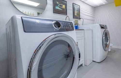 The kitchen is fully equipped with everything you need to prepare meals, including pots, pans, plates, glasses, utensils, serving bowls, salt, pepper, oil, sugar, microwave, drip coffee (coffee included), and an oven. The large gas stove and wall oven offer ease of use, while the kitchen table is perfect for enjoying meals with your guests. The main dining table seats 6, with an additional dining area for 4 people in the study near the backyard access.